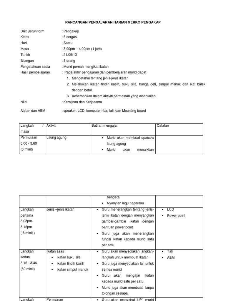 • ikatan dan simpulan banyak digunakan untuk pembuatan gajet dan pioneering. Learn them and do them every day(while ikatan dan simpulan pengakap. 100%(1)100% found this document useful (1 vote). Kajian semantik dan pragmatikfull description. Simpulan dan ikatan asas pandu puteri.