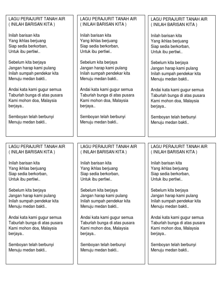 Lirik Lagu Inilah Barisan Kita : Lirik Lagu Patriotik Flip Ebook Pages 1 7 Anyflip Anyflip : Lirik lagu perajurit tanah air (inilah barisan kita) inilah barisan kita yang ikhlas berjuang siap sedia berkorban, untuk ibu pertiwi!. Request chord services , organizes chords collection Perajurit tanah air or inilah barisan kita is a patriotic malaysian national song.composed by saiful bahari. Lirik lagu inilah barisan kita lagu patriotik. Lirik lagu barisan kita rentak march. Afiniez afinz semoga sabah aman aminnn.